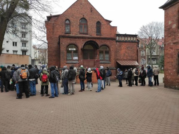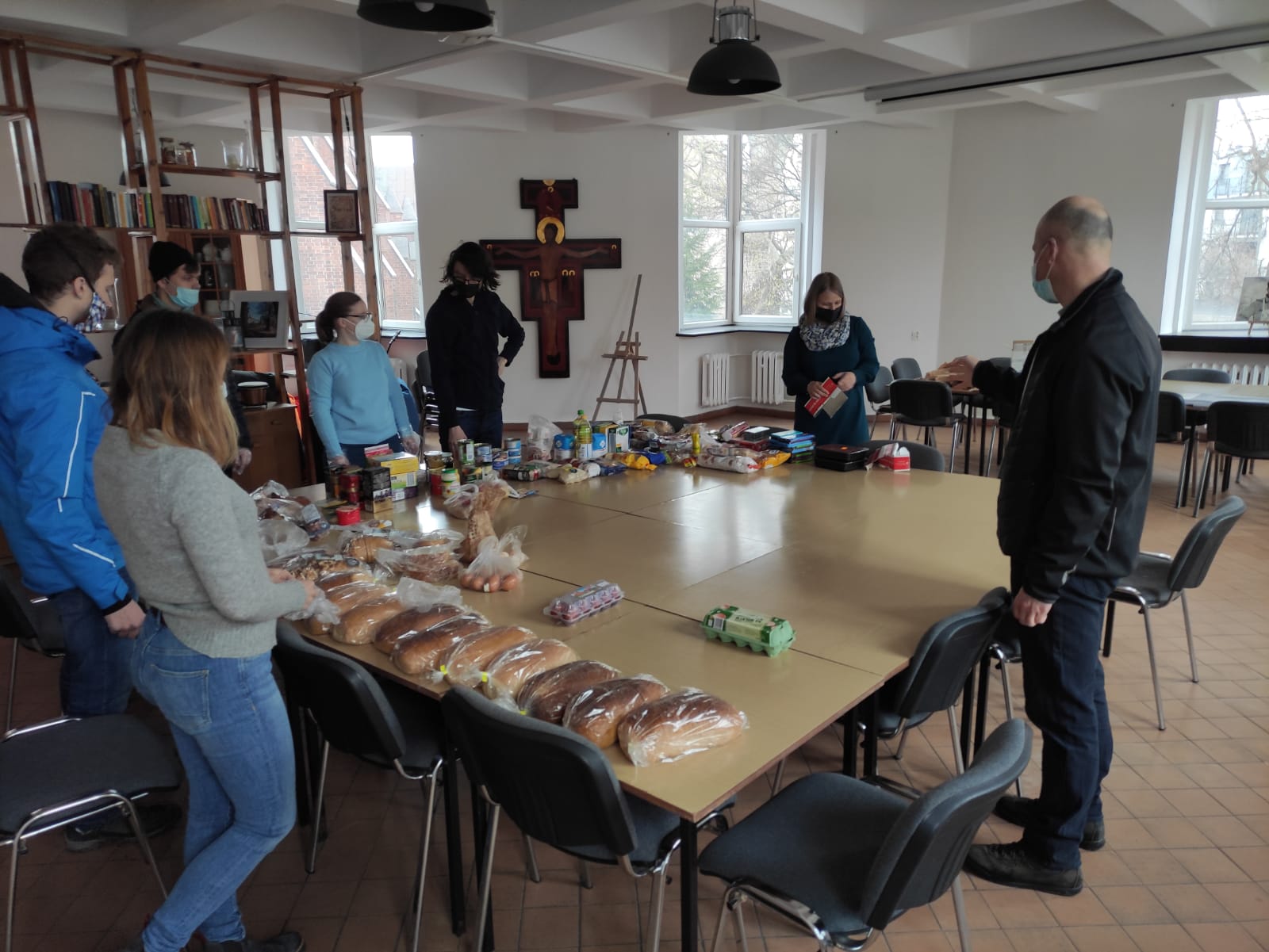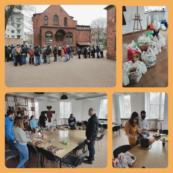 Nasze Duszpasterstwo, co roku, w Poniedziałek Wielkanocny, przygotowuje śniadanie dla ubogich i bezdomnych. W tym roku z powodu pandemii miało ono formę rozdania ciepłego posiłku i paczek.