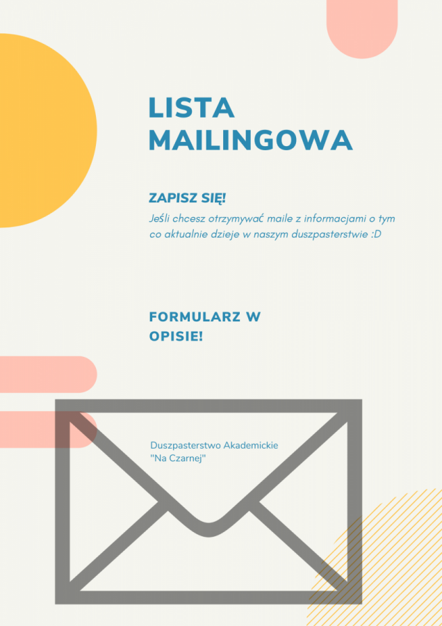 Jeśli chcesz otrzymywać maile z informacjami o tym co aktualnie dzieje w naszym duszpasterstwie - zapisz się!